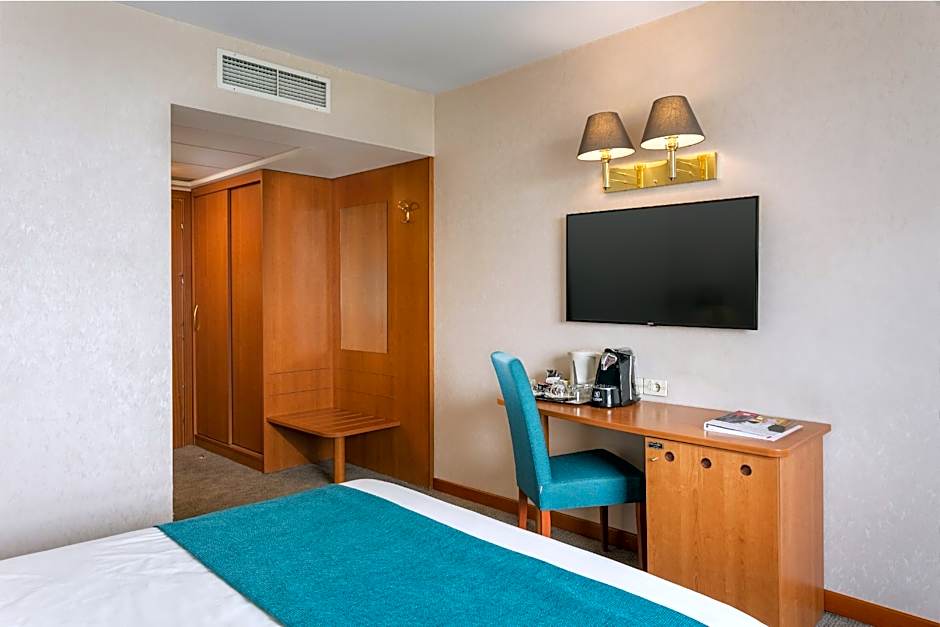 This double occupancy room features one queen size bed, tea/coffee maker, espresso machine, free selection of tea and coffee, free bottle of water, 43"LED TV, air conditioning and soundproofing. Guests benefit of free unlimited access to Vitality Wellness Club SPA.